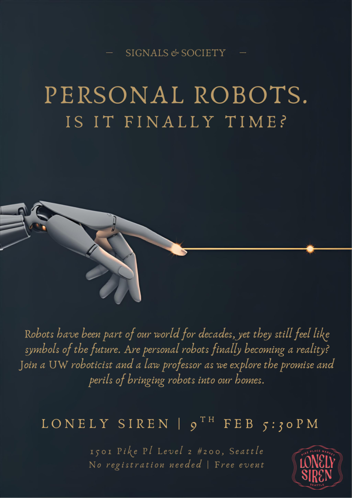Join Society + Technology After Hours on Monday, January 12, 2026, at 5:30 PM at Halcyon Brewery (8564 Greenwood Ave N, Seattle, WA 98103) for Who’s Watching? Privacy and Urban Surveillance, a conversation with Ryan Calo (Law and Information, UW Seattle), Brie McLemore (Political Science, UW Seattle), and NPR’s Martin Kaste. Free and open to the public, no registration required.